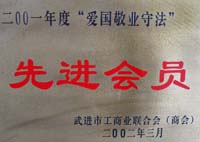 2008年度“爱国敬业诚信守法贡献”先进会员 |